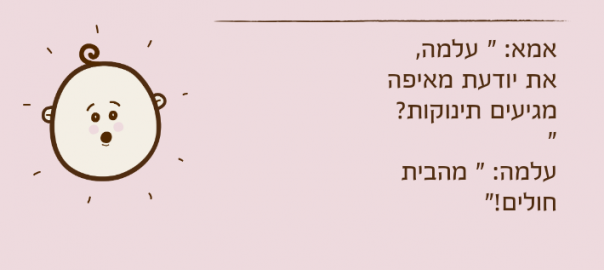 אמא: " עלמה, את יודעת מאיפה מגיעים תינוקות? "