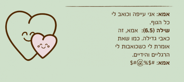 שילה )6.5(: אמא, זה כאבי גדילה. כמו שאת אומרת לי כשכואבות לי הרגליים והידיים.