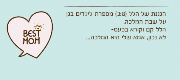 הגננת של הלל )3:8( מספרת לילדים בגן על שבת המלכה.