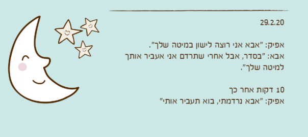 אבא: "בסדר, אבל אחרי שתרדם אני אעביר אותך למיטה שלך".
