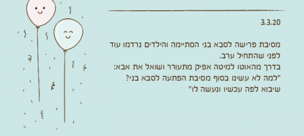 "למה לא עשינו בסוף מסיבת הפתעה לסבא בני? שיבוא לפה עכשיו ונעשה לו"