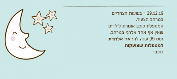 המטפלת כוכב אומרת לילדים שאין אף אחד אלרגי במרחב.