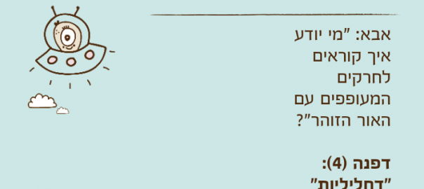 אבא: "מי יודע איך קוראים לחרקים המעופפים עם האור הזוהר"?