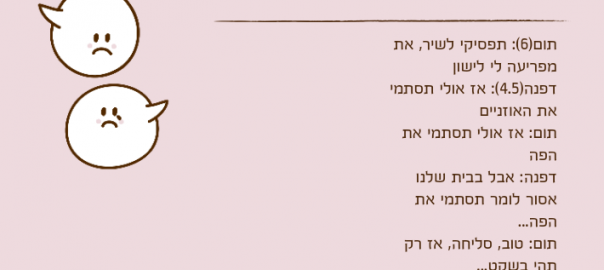 תום)6(: תפסיקי לשיר, את מפריעה לי לישון