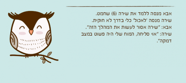 שירה מנסה 'לאכול' כלי בדרך לא חוקית.