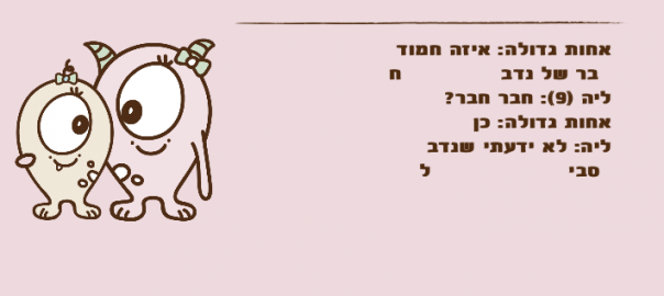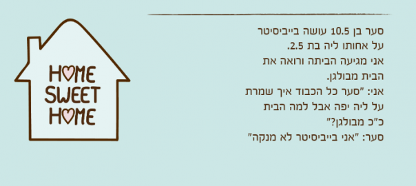 אני: "סער כל הכבוד איך שמרת על ליה יפה אבל למה הבית כ"כ מבולגן?"
