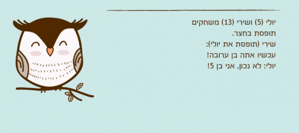 סער בן 10.5 עושה בייביסיטר על אחותו ליה בת 2.5.