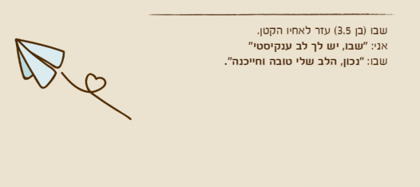שבו )בן 3.5( עזר לאחיו הקטן.