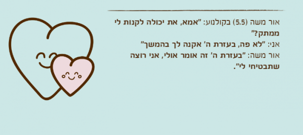 אני: "לא פה, בעזרת ה' אקנה לך בהמשך"