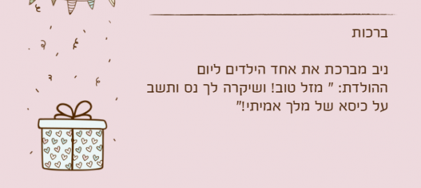ניב מברכת את אחד הילדים ליום ההולדת: " מזל טוב! ושיקרה לך נס ותשב על כיסא של מלך אמיתי!"