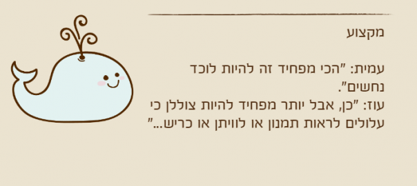 עוז: "כן, אבל יותר מפחיד להיות צוללן כי עלולים לראות תמנון או לוויתן או כריש…"