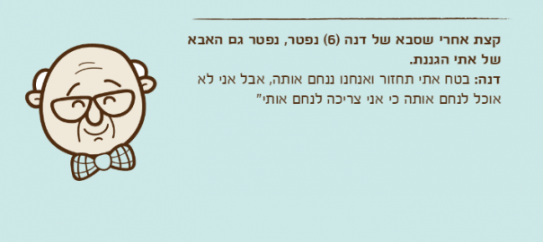 קצת אחרי שסבא של דנה )6( נפטר, נפטר גם האבא של אתי הגננת.