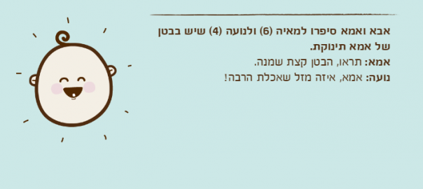 אמא: תראו, הבטן קצת שמנה.