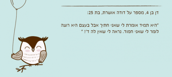 דן בן 4, מספר על דודה אושרת, בת 25: