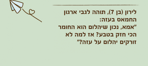 לירון )בן 7(, תוהה לגבי ארגון החמאס בעזה: