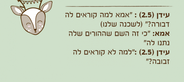 עידן )2.5( : "אמא למה קוראים לה דבורה?" )לשכנה שלנו(