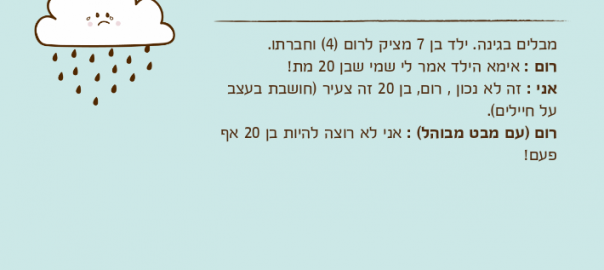 רום : אימא הילד אמר לי שמי שבן 20 מת!