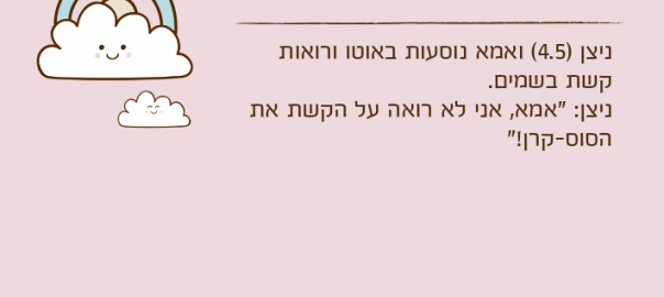 ניצן: "אמא, אני לא רואה על הקשת את הסוס-קרן!"