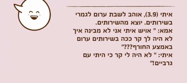 איתי )3.9(, אוהב לשבת ערום לגמרי בשירותים. יוצא מהשירותים.