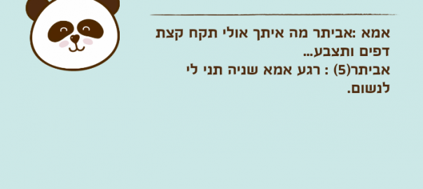 אביתר)5( : רגע אמא שניה תני לי לנשום.
