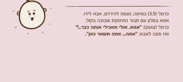 כרמל )צועק(: "אמא, אולי תאכילי אותה כבר..!"