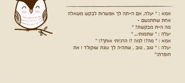 אמא : " יעלה, אם הייתה לך אפשרות לבקש משאלה אחת שתתגשם –