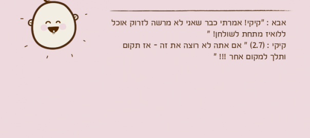אבא : "קיקי! אמרתי כבר שאני לא מרשה לזרוק אוכל ללואיז מתחת לשולחן! "