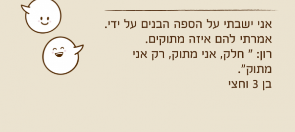 אמא: "רותם, מה אמרנו על פלישה למרחב האישי של אלון?"