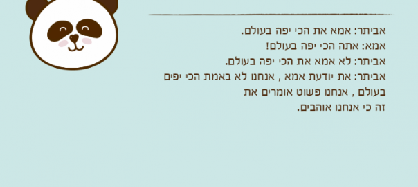 אביתר: את יודעת אמא , אנחנו לא באמת הכי יפים בעולם , אנחנו פשוט אומרים את