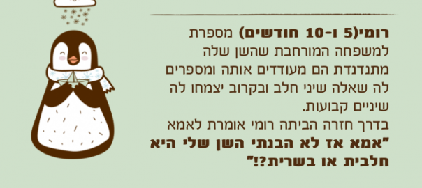 בדרך חזרה הביתה רומי אומרת לאמא "אמא אז לא הבנתי השן שלי היא חלבית או בשרית?!”