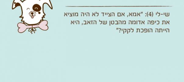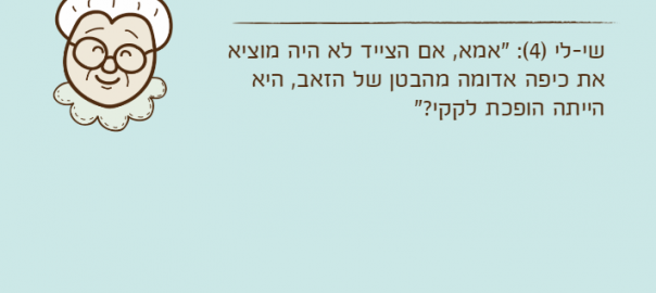 שי-לי )4(: "אמא, אם הצייד לא היה מוציא את כיפה אדומה מהבטן של הזאב, היא הייתה הופכת לקקי?"