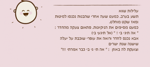 אבא נכנס לחדר ורואה את עופרי שוכבת על יעלה שישנה שנת ישרים