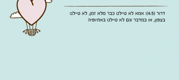 דרור )4.5(: אמא לא טיילנו כבר מלא זמן, לא טיילנו בצפון, או במדבר וגם לא טיילנו באתיופיה
