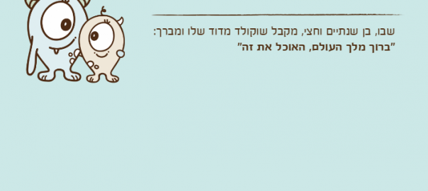 שבו, בן שנתיים וחצי, מקבל שוקולד מדוד שלו ומברך: