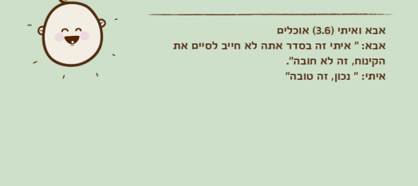 אבא: " איתי זה בסדר אתה לא חייב לסיים את הקינוח, זה לא חובה".