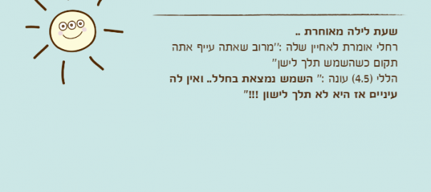 רחלי אומרת לאחיין שלה :''מרוב שאתה עייף אתה תקום כשהשמש תלך לישן''