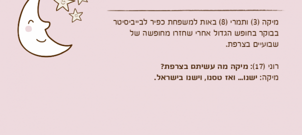 מיקה: ישנו… ואז טסנו, וישנו בישראל.
