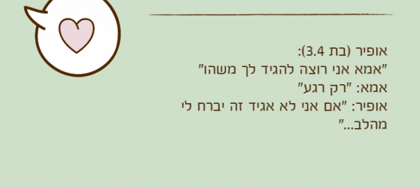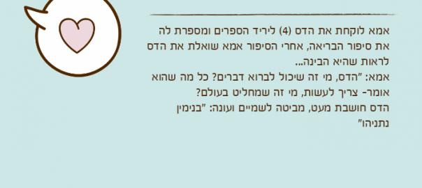 אמא: "הדס, מי זה שיכול לברוא דברים? כל מה שהוא אומר- צריך לעשות, מי זה שמחליט בעולם?