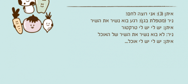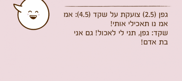 גפן )2.5( צועקת על שקד )4.5(: אמ אמ נו תאכילי אותי!