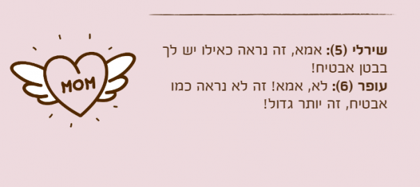 שירלי )5(: אמא, זה נראה כאילו יש לך בבטן אבטיח!