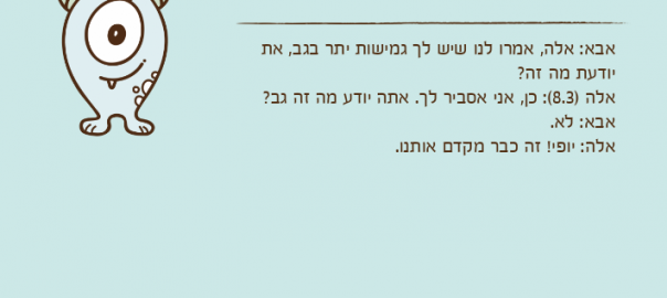 אבא: אלה, אמרו לנו שיש לך גמישות יתר בגב, את יודעת מה זה?
