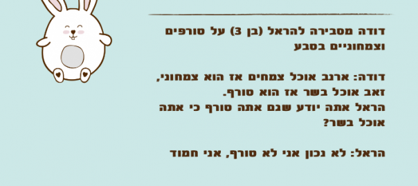 דודה: ארנב אוכל צמחים אז הוא צמחוני, זאב אוכל בשר אז הוא טורף.