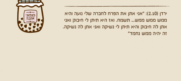 ירדן )2.10(: "אני אתן את הפרח לחברה שלי נועה והיא ממש ממש ממש… תשמח. ואז היא תיתן לי חיבוק ואני אתן לה חיבוק והיא תיתן לי נשיקה ואני אתן לה נשיקה. זה יהיה ממש נחמד"