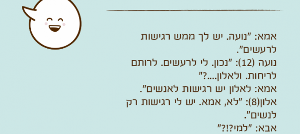 נועה )12(: "נכון. לי לרעשים. לרותם לריחות. ולאלון….?"