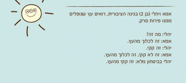 אמא: זה לא קקי, זה לכלוך מהעץ.