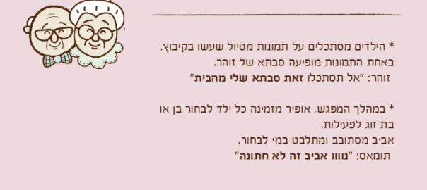 * במהלך המפגש, אופיר מזמינה כל ילד לבחור בן או בת זוג לפעילות.