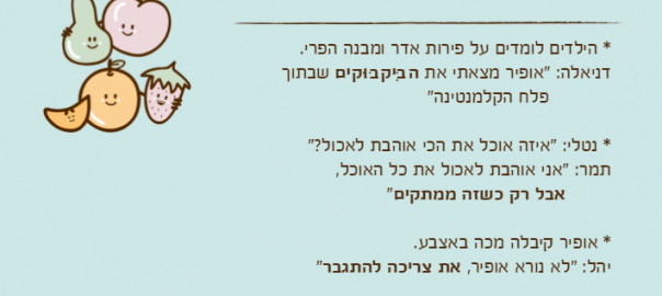 מעיין שואלת את הילדים: "מי רוצה עוד תָפּוּזִינִים"