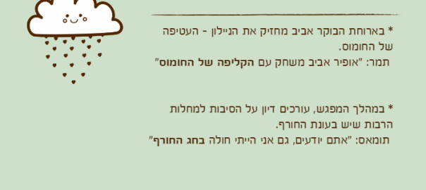 * במהלך המפגש, עורכים דיון על הסיבות למחלות הרבות שיש בעונת החורף.