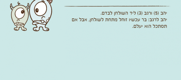 יהב )5( ורגב )3( ליד השולחן לבדם.