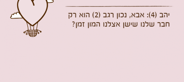 יהב )4(: אבא, נכון רגב )2( הוא רק חבר שלנו שישן אצלנו המון זמן?